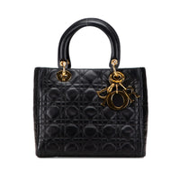 Dior Lady Dior Medium Black Lagbskin oro