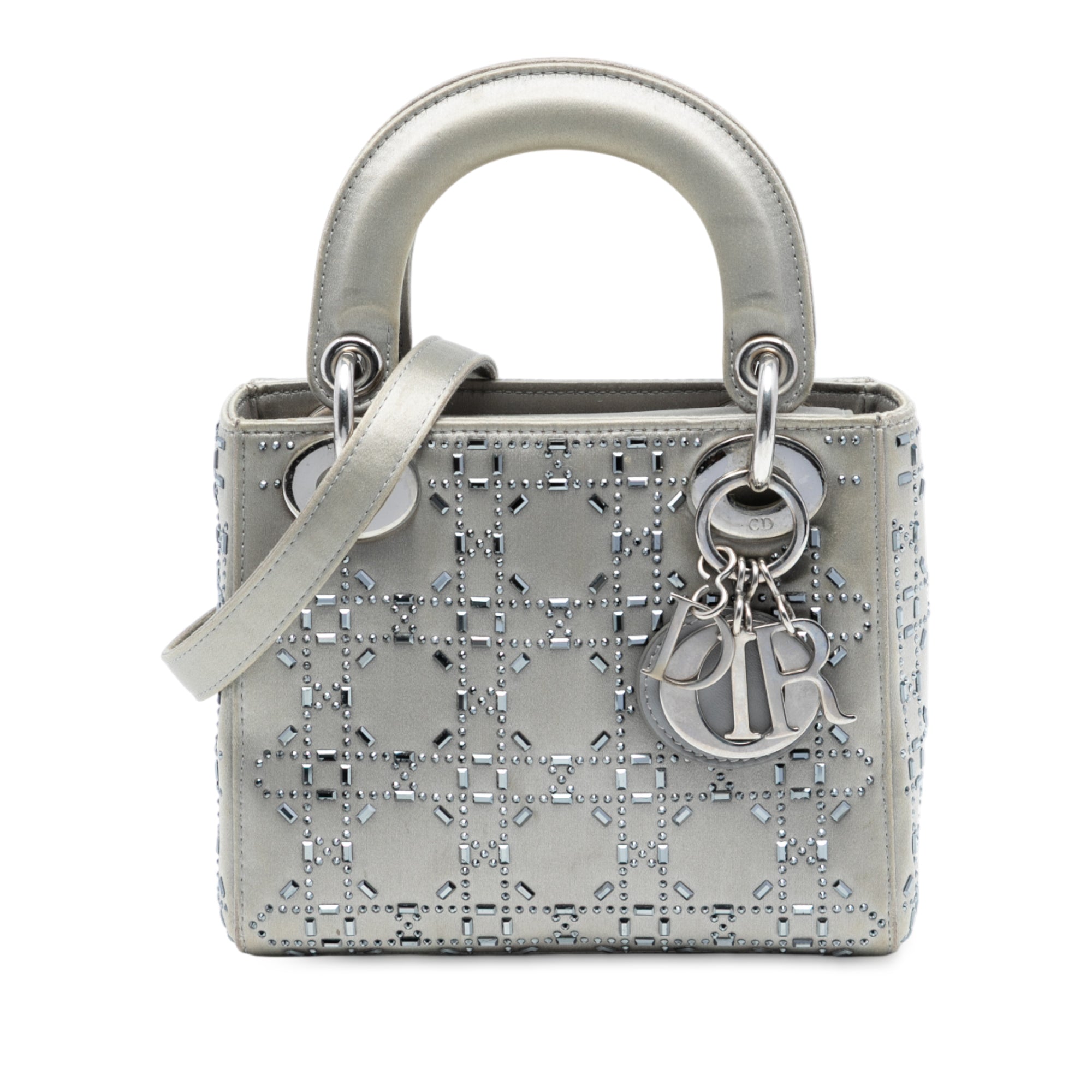 Dior Lady Dior Mini Grey Satin Crystal Embellished