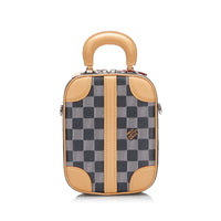Realizzata in tela Damier nera, la borsa Valisette Vertical di Louis Vuitton presenta finiture e manici in pelle vachetta, dettagli in argento, una doppia chiusura a zip, una tracolla regolabile e rimovibile e una tasca interna. Il borsa può essere portata a mano o a tracolla.