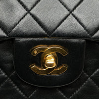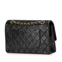 Chanel Classic doppia patta media pelle di agnello nera oro