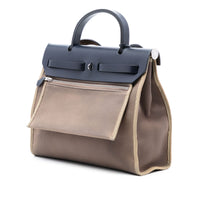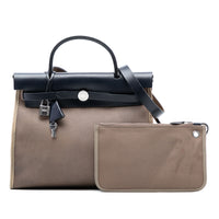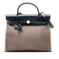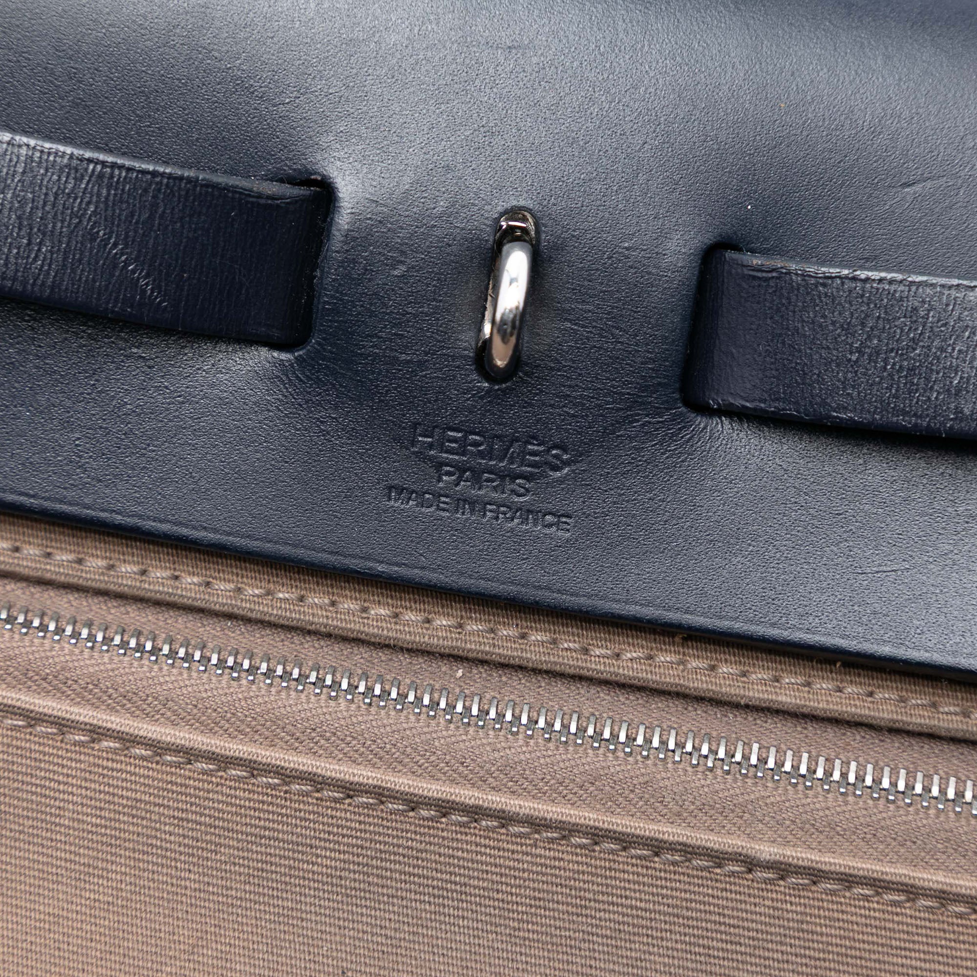 Hermès Herbag Zip 31 Brown Canvas Blue Calfskin
