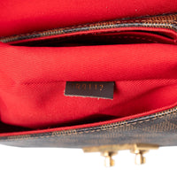 Die Louis Vuitton Croisette in Damier Ebene verbindet eine kompakte, strukturierte Silhouette mit dem ikonischen Schachbrettmuster des Hauses. Der beschichtete Canvas wirkt elegant und alltagstauglich, ergänzt durch Lederbesatz und einen gerollten Lederhenkel für eine klassische Handhaltung. Goldfarbene Metallakzente setzen dezente Glanzpunkte und unterstreichen die klare Linienführung.