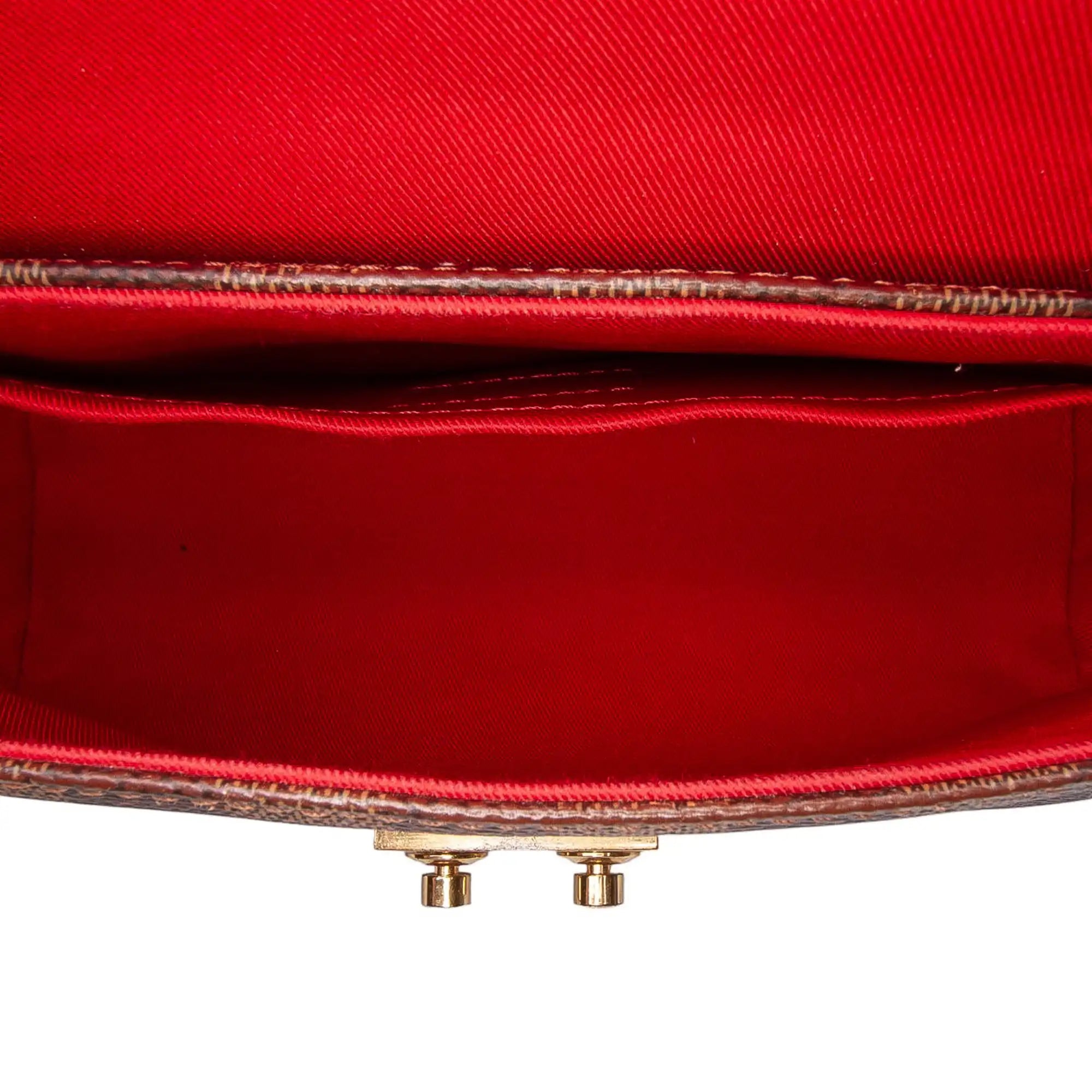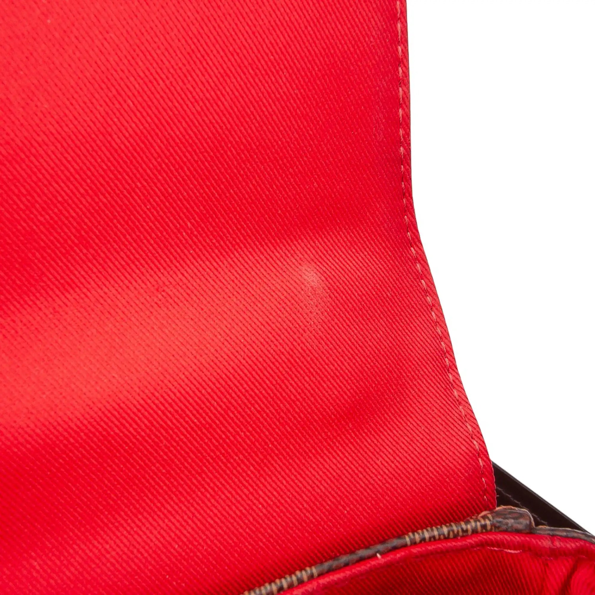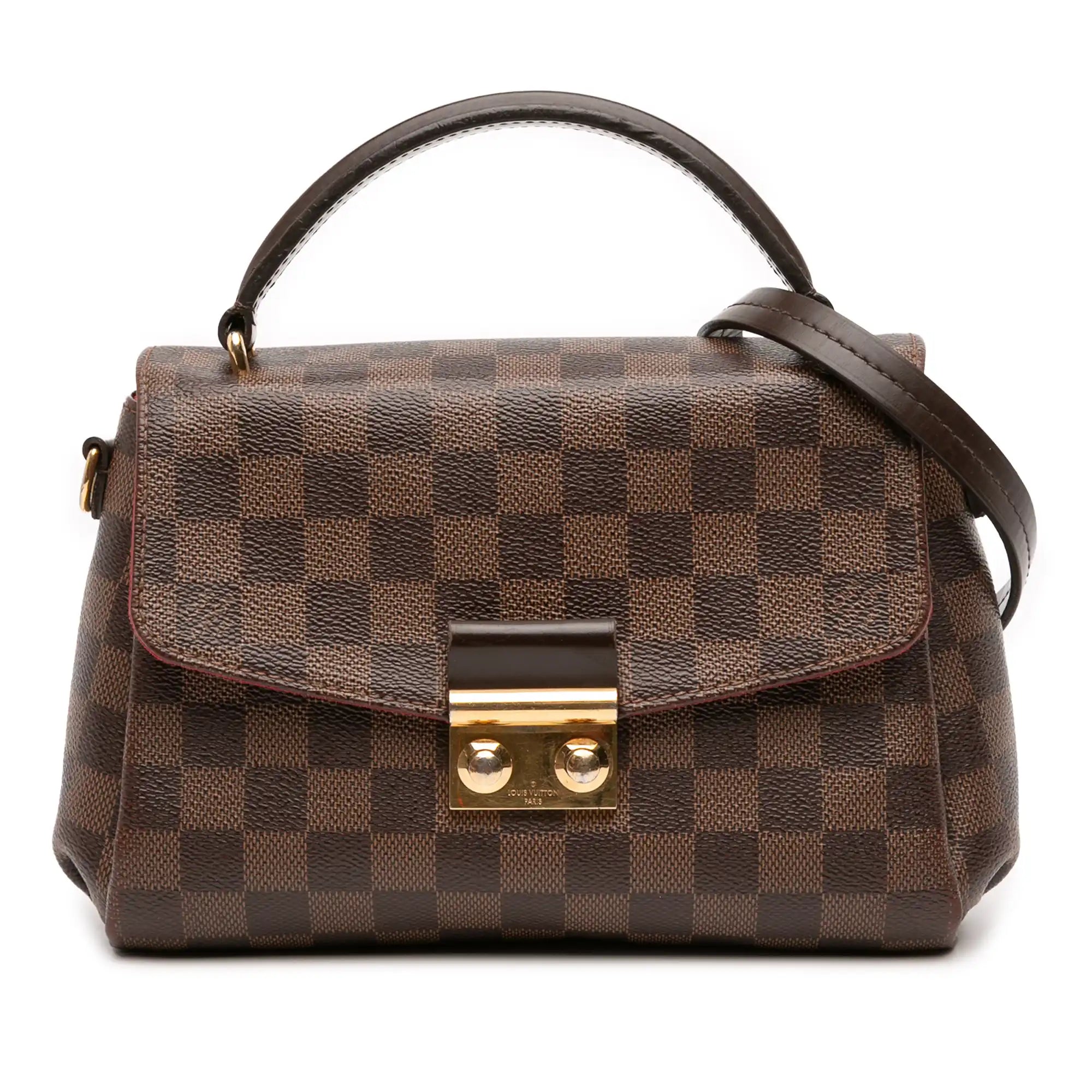 Questa bellissima borsa a manico alto Louis Vuitton Croisette è realizzata in tela Damier Ebene marrone. Il borsa ha finiture marroni e un manico in pelle, oltre a dettagli dorati. La patta frontale si chiude con una chiusura a pressione dorata. L'interno della borsa è dotato di una tasca portaoggetti. Il borsa può essere portata in mano o a spalla con una tracolla staccabile.