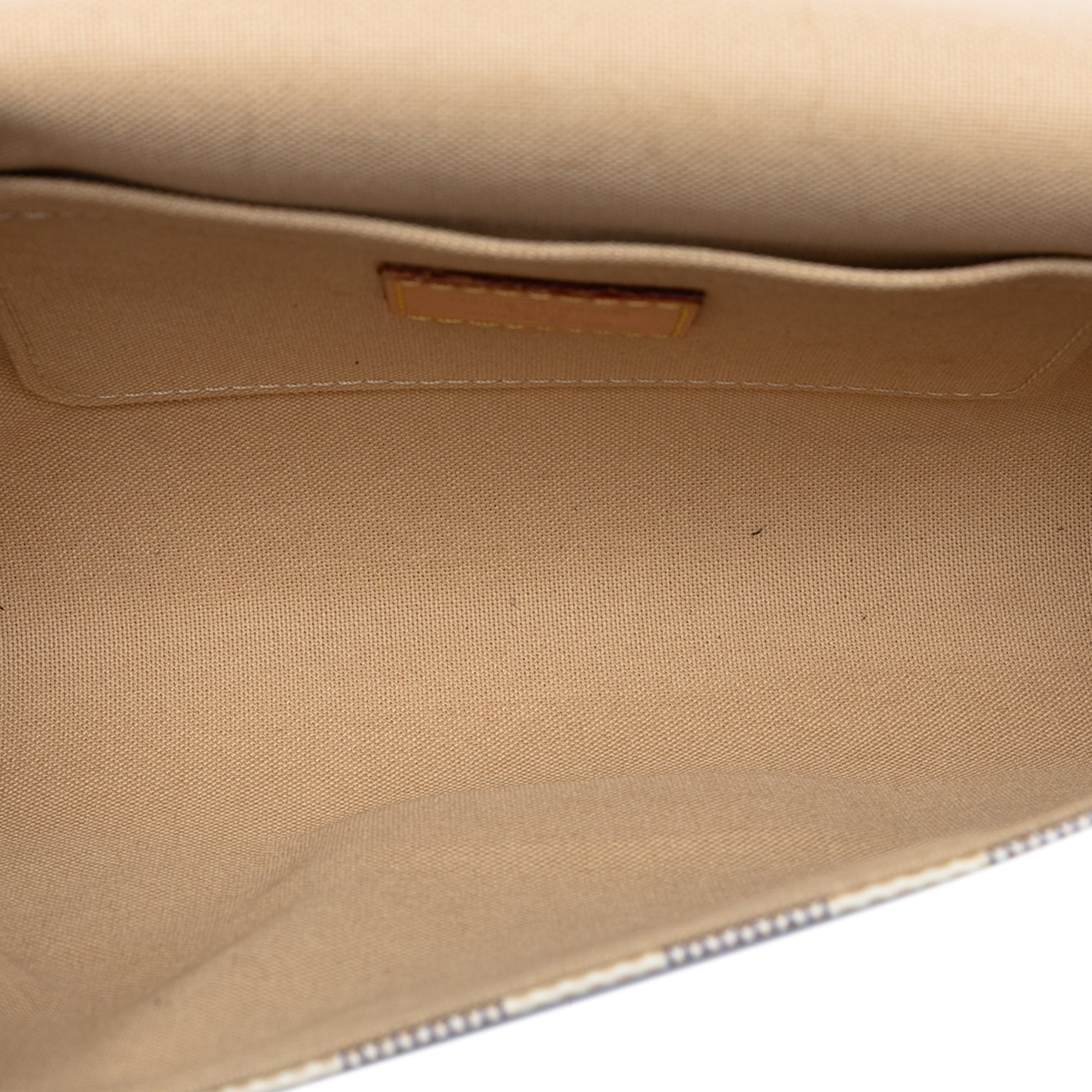 La Louis Vuitton Damier Azur Favorite MM è un'elegante pochette dalle linee pulite, caratterizzata dalla luminosa tela Damier Azur. La tela rivestita è impreziosita da dettagli in pelle Vachetta e valorizzata da finiture metalliche lucide. La patta frontale con chiusura magnetica garantisce una silhouette slanciata e una maneggevolezza semplice, mentre la raffinata lavorazione sottolinea il tipico stile Louis Vuitton.
