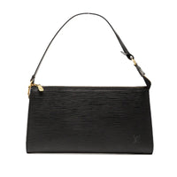 Un must di questa stagione: questa pochette Louis Vuitton è realizzata in pelle Epi nera. La cerniera apre un interno rivestito in Alcantara, in cui trovano spazio tutte le piccole cose necessarie (cellulare, chiavi, trucchi...). IL borsa wird kann sowohl in der Hand, im Arm oder auch nahe der Schulter geführt werden.