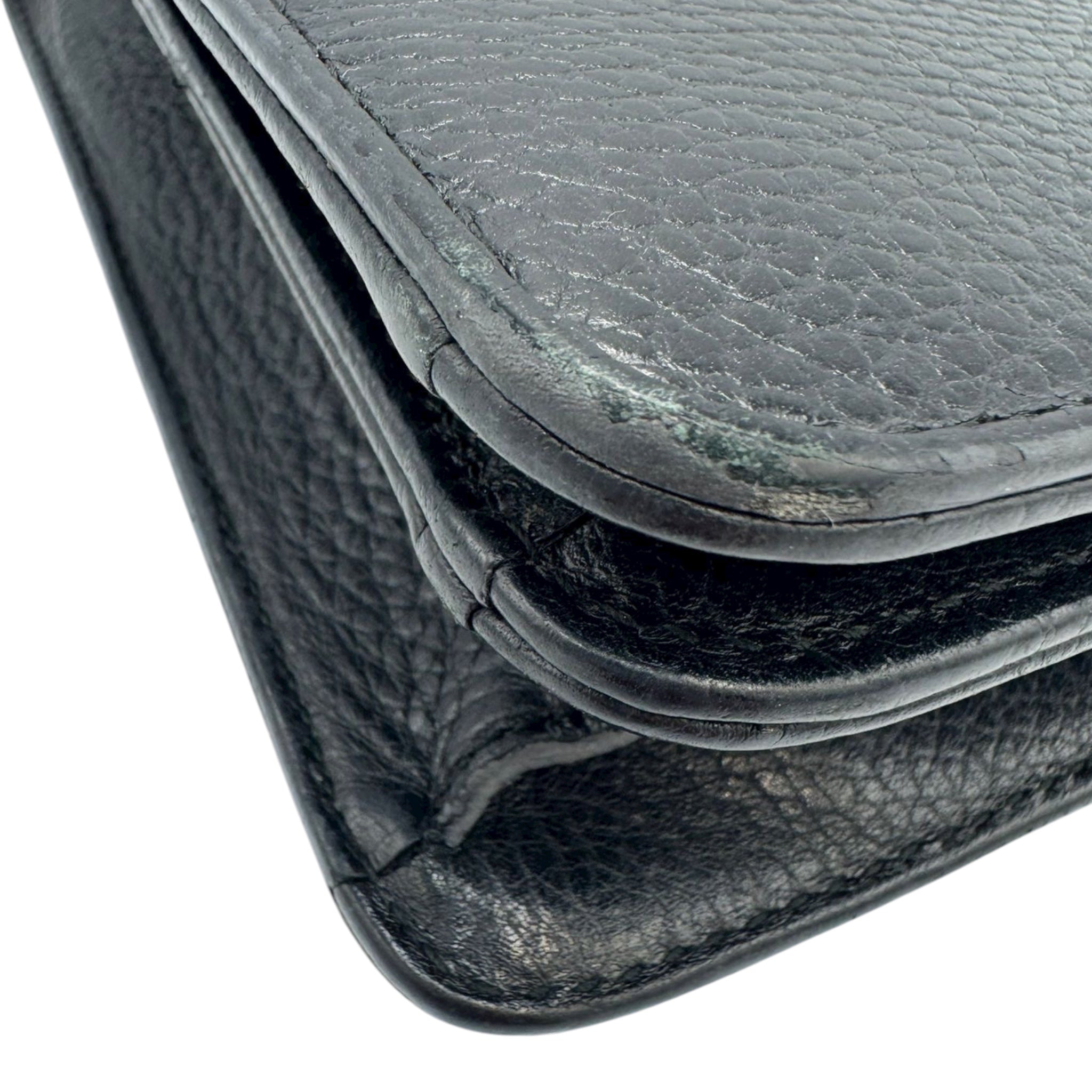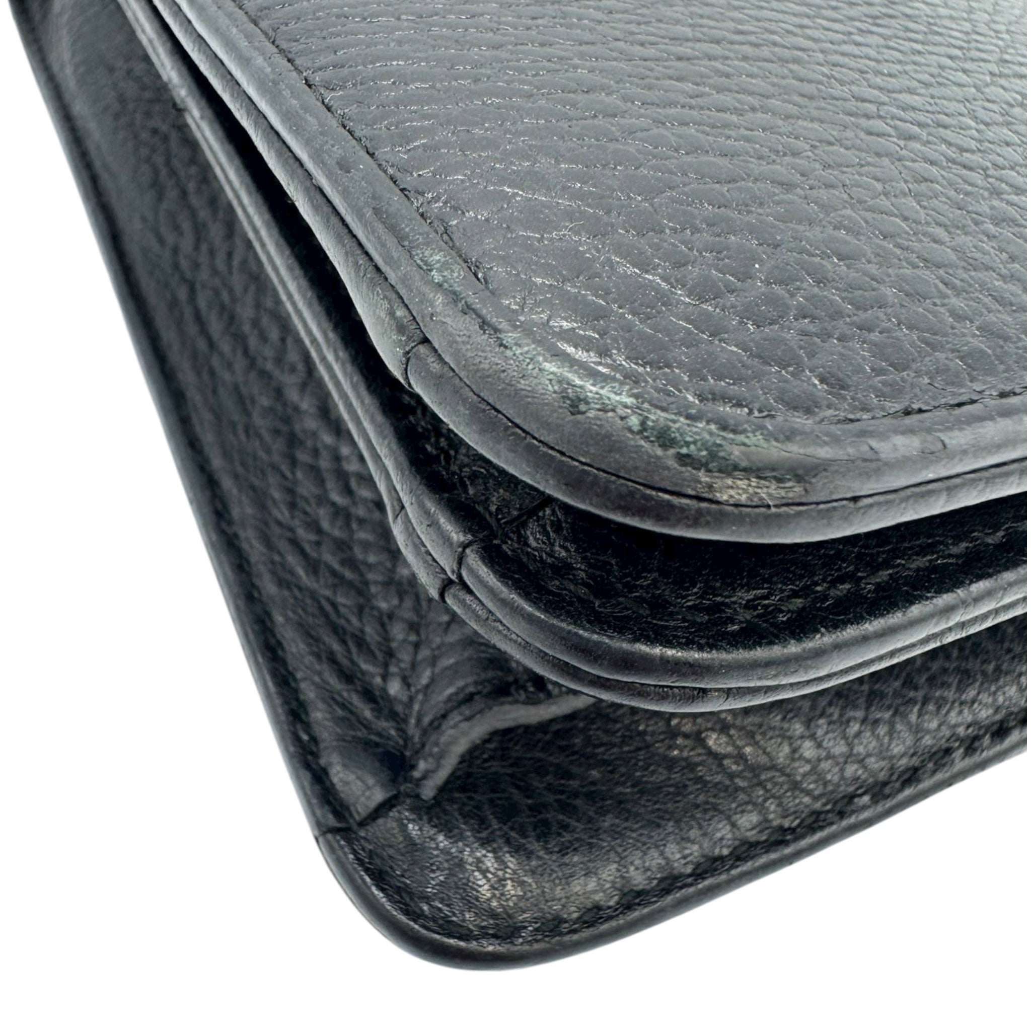 Condizione: La pelle presenta segni di usura all'esterno, soprattutto intorno alla chiusura. Gli angoli sono leggermente usurati. Sono presenti graffi sulla minuteria. L'interno è pulito.