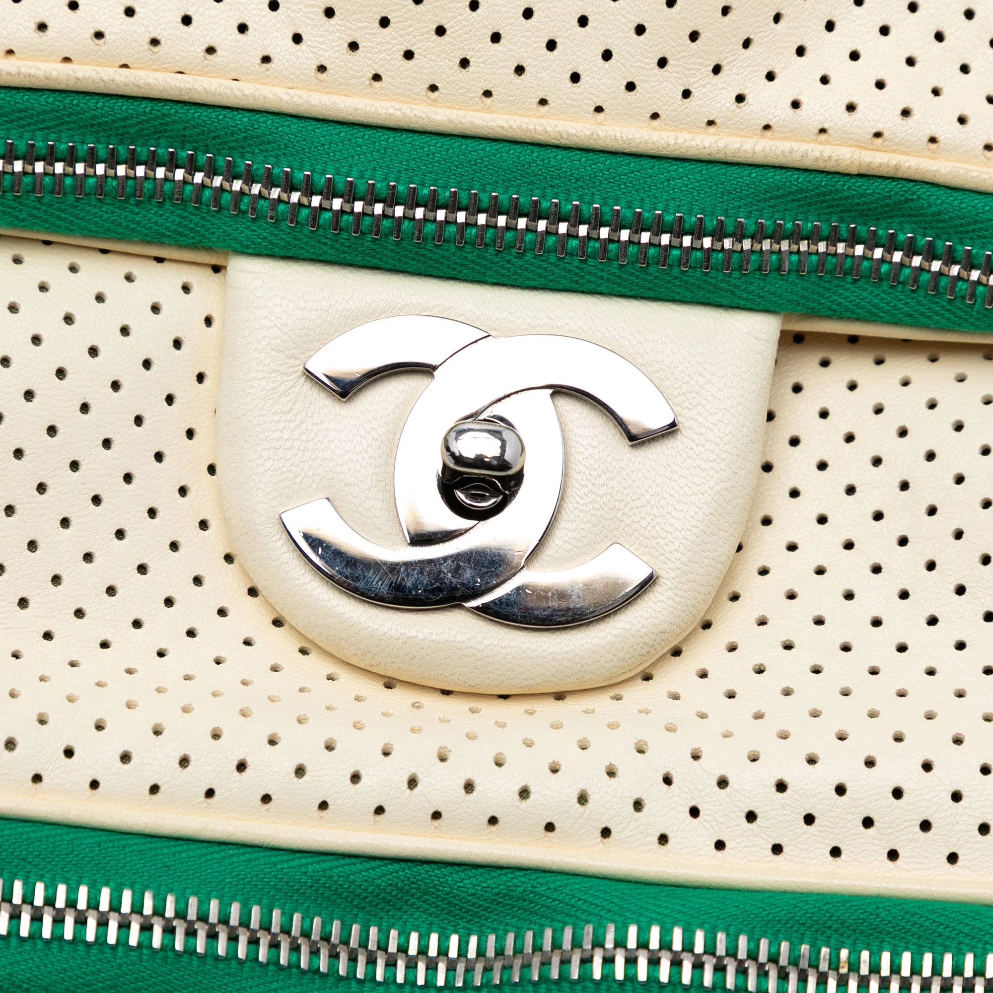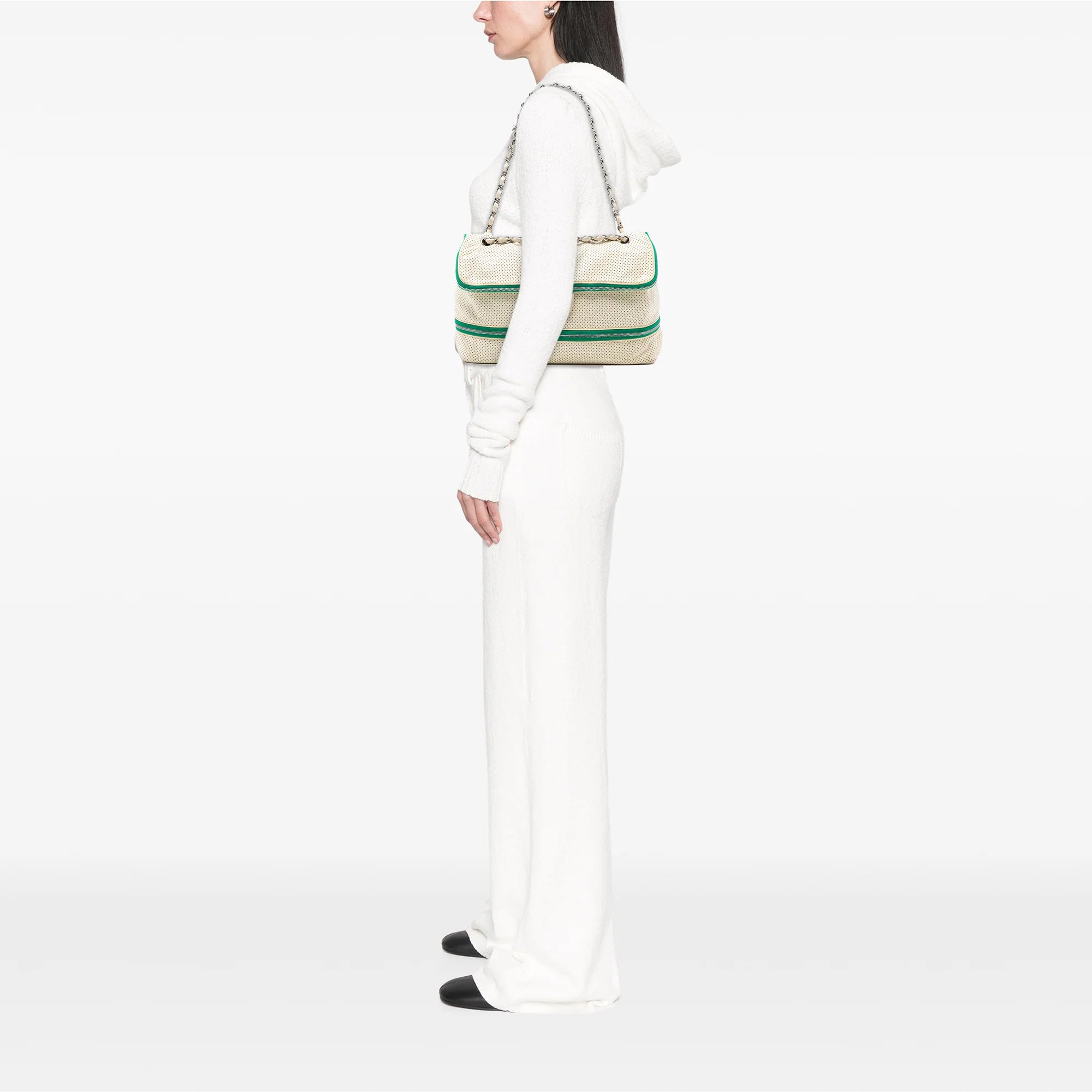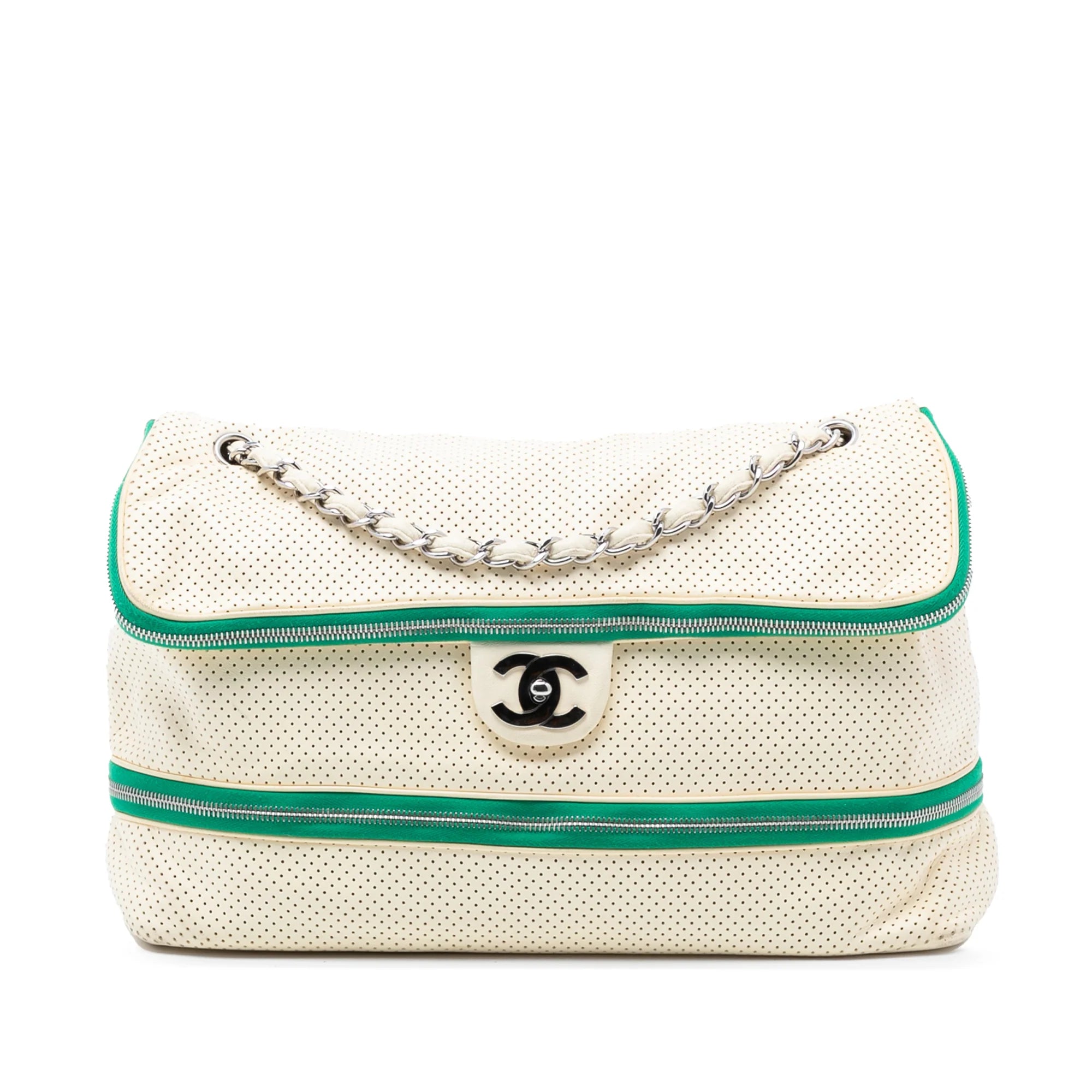 Chanel Expandable Shoulder Bag White Perforated Calfskin