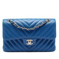 Chanel Classic Double Flap Small Chevron Blue Lambskin