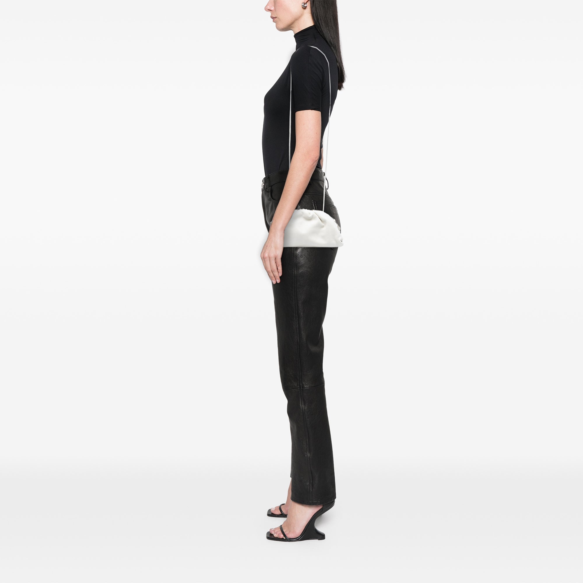 Gefertigt aus feinem Lammleder überzeugt das Modell durch eine geschmeidige Haptik und eine elegante, matte Oberfläche. Der schlanke Lederträger ermöglicht das Tragen als Crossbody oder nah am Körper und eignet sich besonders für Tage und Abende, an denen nur das Wesentliche mitgeführt wird. Im Inneren bietet das Hauptfach Platz für Smartphone, Kartenetui, Schlüssel und kleine Essentials, ohne die Form der Tasche zu überladen.