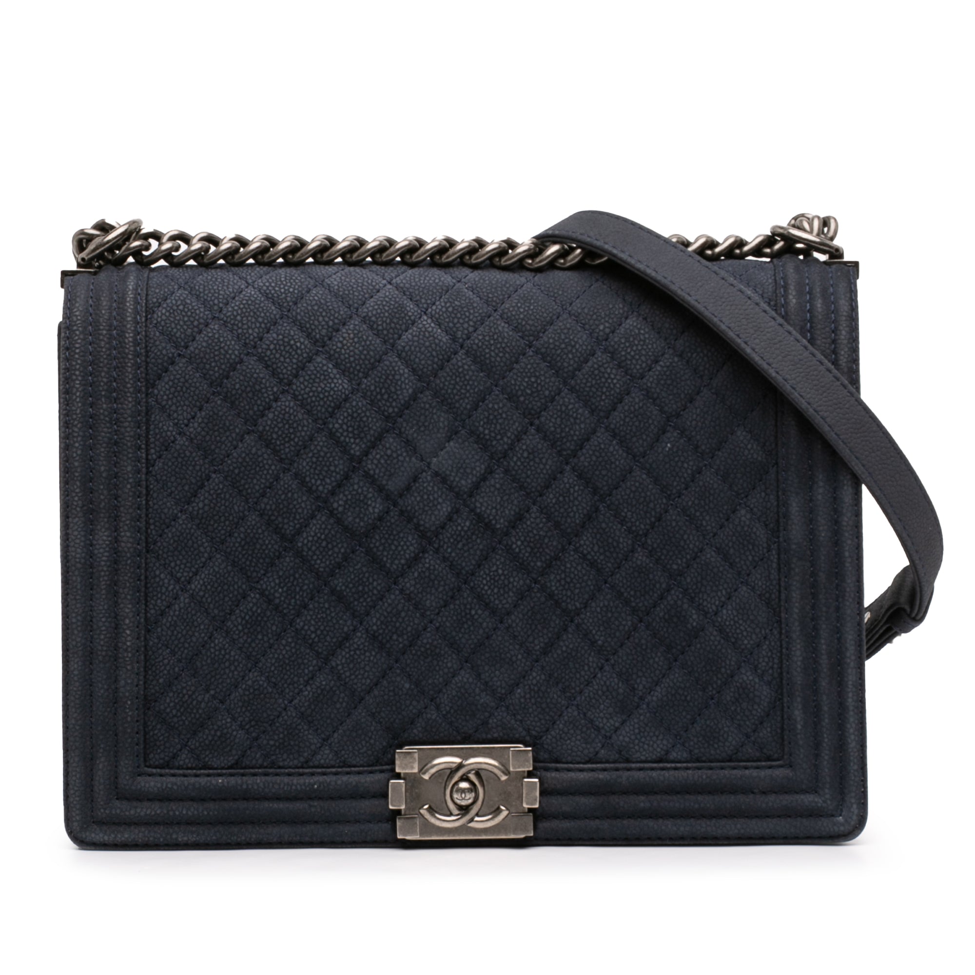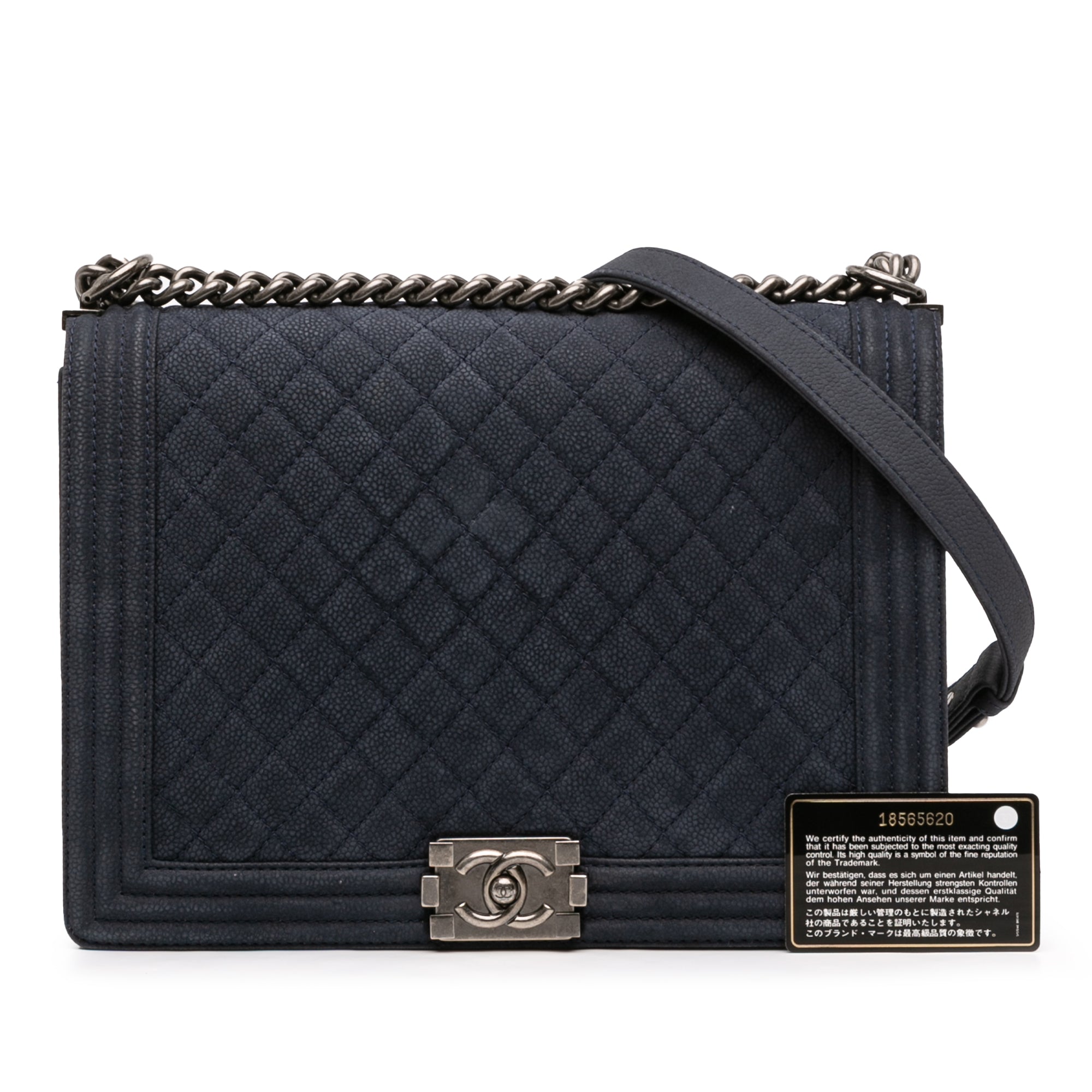 Chanel Boy Flap Large Blue Caviar Ruthenium