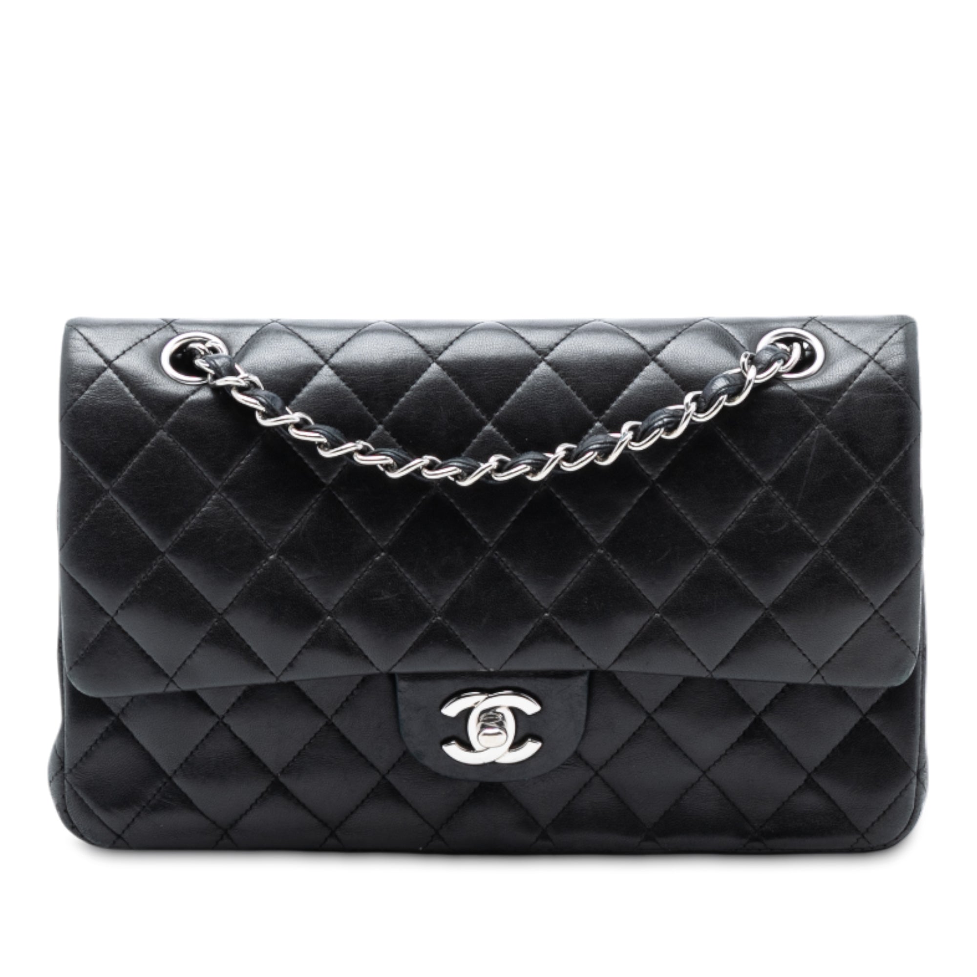 Chanel Classic Double Flap Medium Black Lambskin Silver