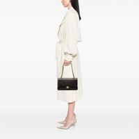 Die Chanel Classic Double Flap ist wohl eine der begehrtesten Taschen der Welt. Mit ihrem eleganten und zeitlosen Design, dessen Ursprünge auf das Modell 2.55 aus dem Jahr 1955 zurückzuführen sind. Das ikonische CC Schloss wurde jedoch erst später durch die Magie von Karl Lagerfeld erschaffen. Aus feinstem Lammleder gefertigt, verfügt die Tasche über ein Aussenfach auf der Rückseite. Auf der Innenseite der vorderen Lasche, ist das geheime Reissverschlussfach von Coco Chanel zu finden. Die Innere Klappe lässt sich mit Knopfdruck schliessen. Im Innenbereich sind zwei Steckfächer angebracht. Zusätzlich verfügt die Tasche noch ein weiteres offenes Fach auf der inneren Vorderseite.