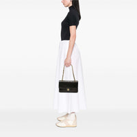 Die Chanel Classic Double Flap ist wohl eine der begehrtesten Taschen der Welt. Mit ihrem eleganten und zeitlosen Design, dessen Ursprünge auf das Modell 2.55 aus dem Jahr 1955 zurückzuführen sind. Das ikonische CC Schloss wurde jedoch erst später durch die Magie von Karl Lagerfeld erschaffen. Aus feinstem Lammleder gefertigt, verfügt die Tasche über ein Aussenfach auf der Rückseite. Auf der Innenseite der vorderen Lasche, ist das geheime Reissverschlussfach von Coco Chanel zu finden. Die Innere Klappe lässt sich mit Knopfdruck schliessen. Im Innenbereich sind zwei Steckfächer angebracht. Zusätzlich verfügt die Tasche noch ein weiteres offenes Fach auf der inneren Vorderseite.