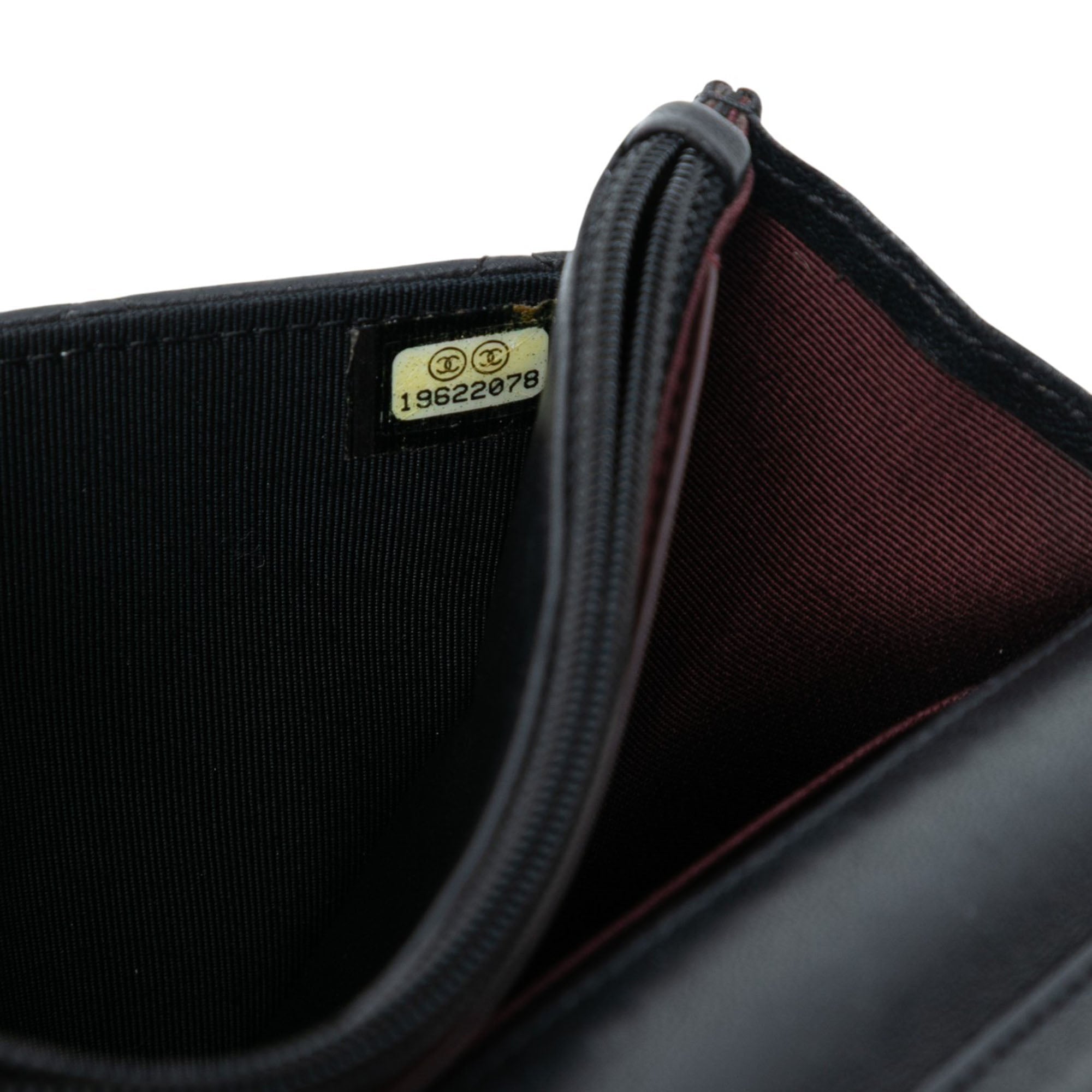 Die Chanel Classic CC Wallet On Chain aus schwarzem Lammleder zeichnet sich durch das ikonische Rautenmuster sowie das silberfarbene CC-Logo aus. Das Modell verfügt über einen Kettenriemen sowie ein durchdachtes Innenleben mit mehreren Fächern und Kartensteckplätzen. Die Kombination aus klassischem Design und kompaktem Format macht die Tasche vielseitig einsetzbar.
