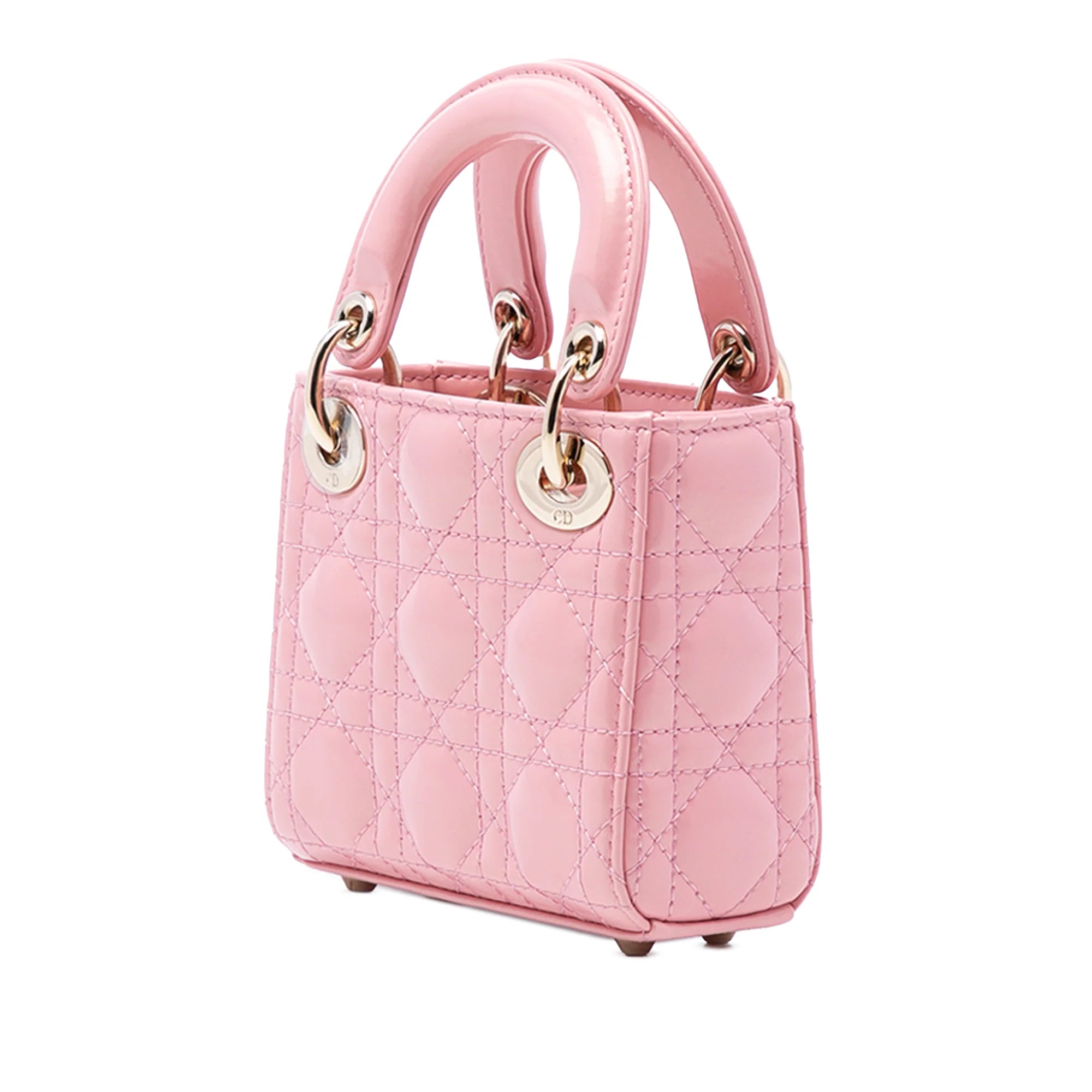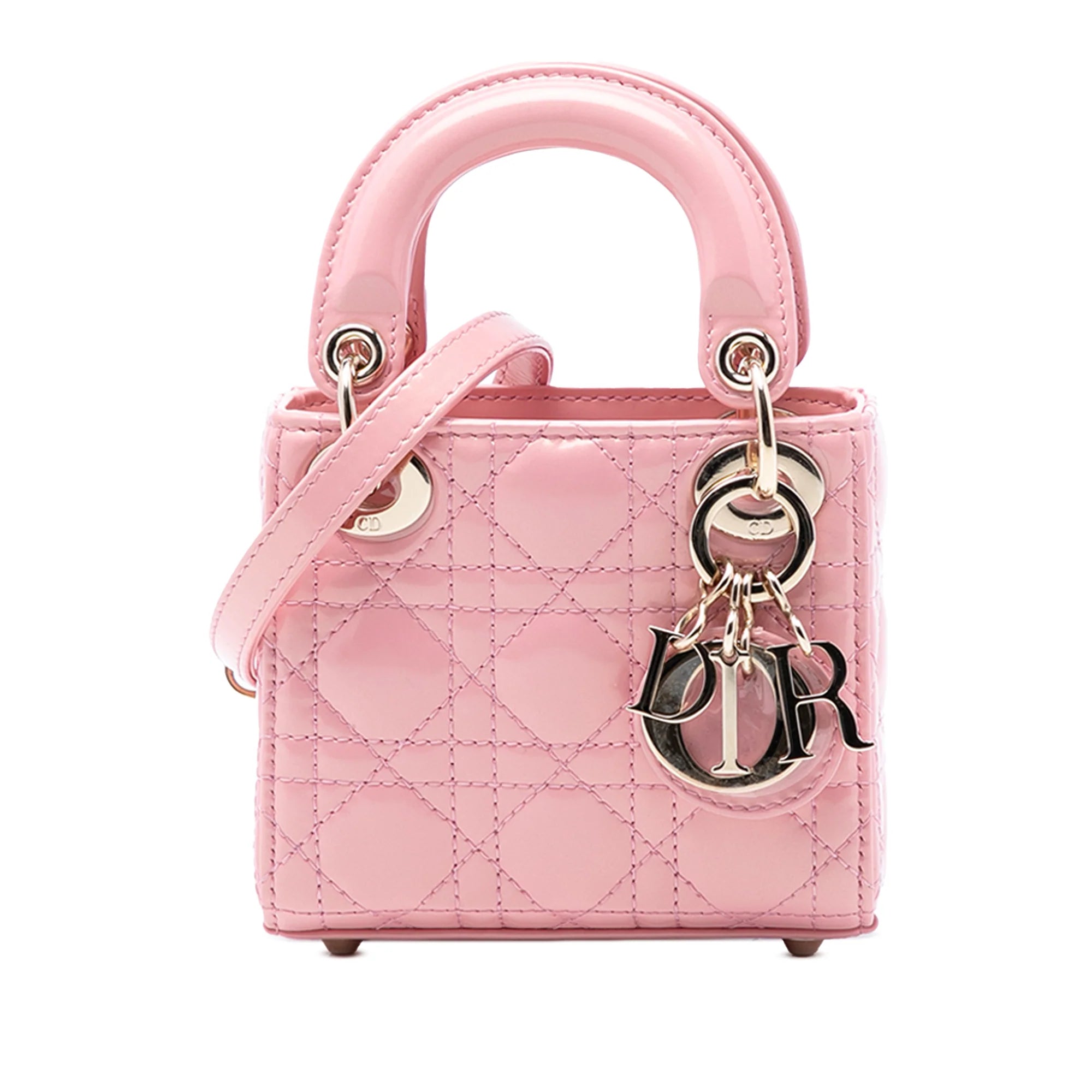 Dior Lady Dior Micro Pastel Pink Cannage Patent Leather Gold
