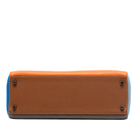 Die Hermès Kelly II Retourne 32 im Arlequin-Design interpretiert die ikonische Kelly-Linie mit einer verspielten, klar strukturierten Farbblock-Ästhetik. Das Modell ist in weichem Clemence-Leder gefertigt, dessen natürliche Narbung dem klassischen Format eine entspannte, leicht gerundete Silhouette verleiht. Charakteristisch sind der flache Lederhenkel, der Überschlag mit Drehverschluss sowie das fein abgestimmte Zusammenspiel mehrerer Lederfarben, das die Handwerkskunst dezent in Szene setzt. Palladiumfarbene Metallbeschläge unterstreichen den kühlen, präzisen Look.