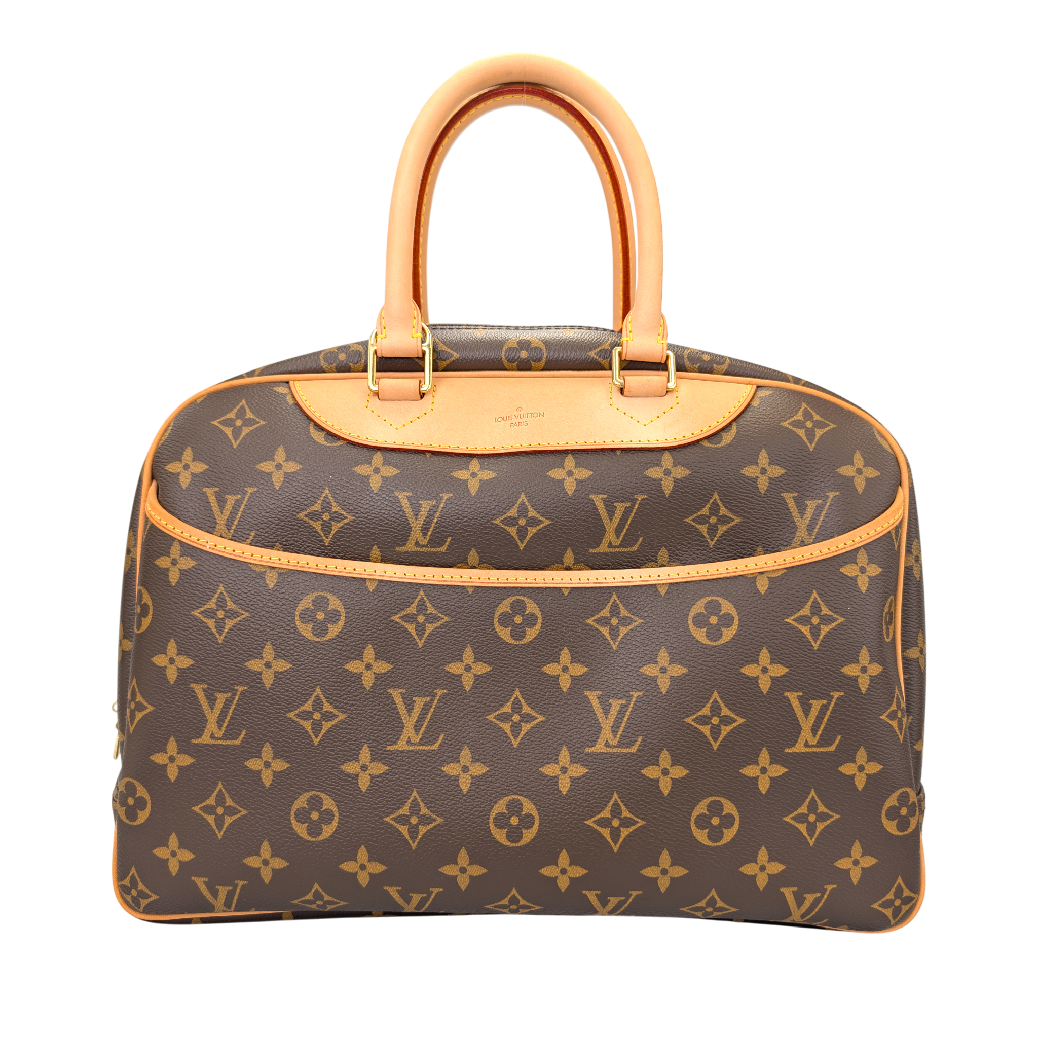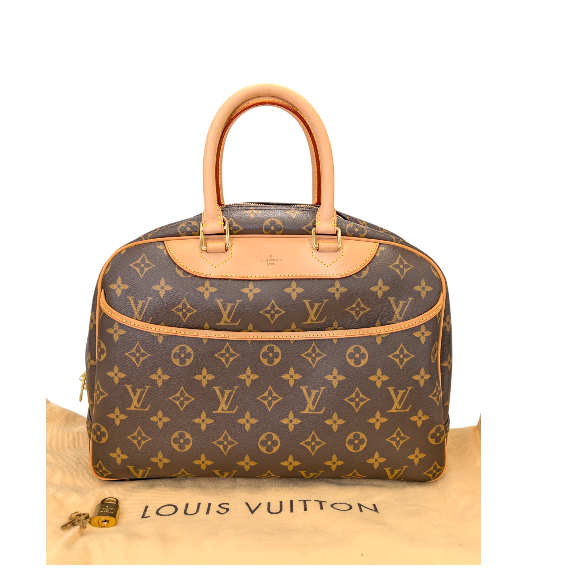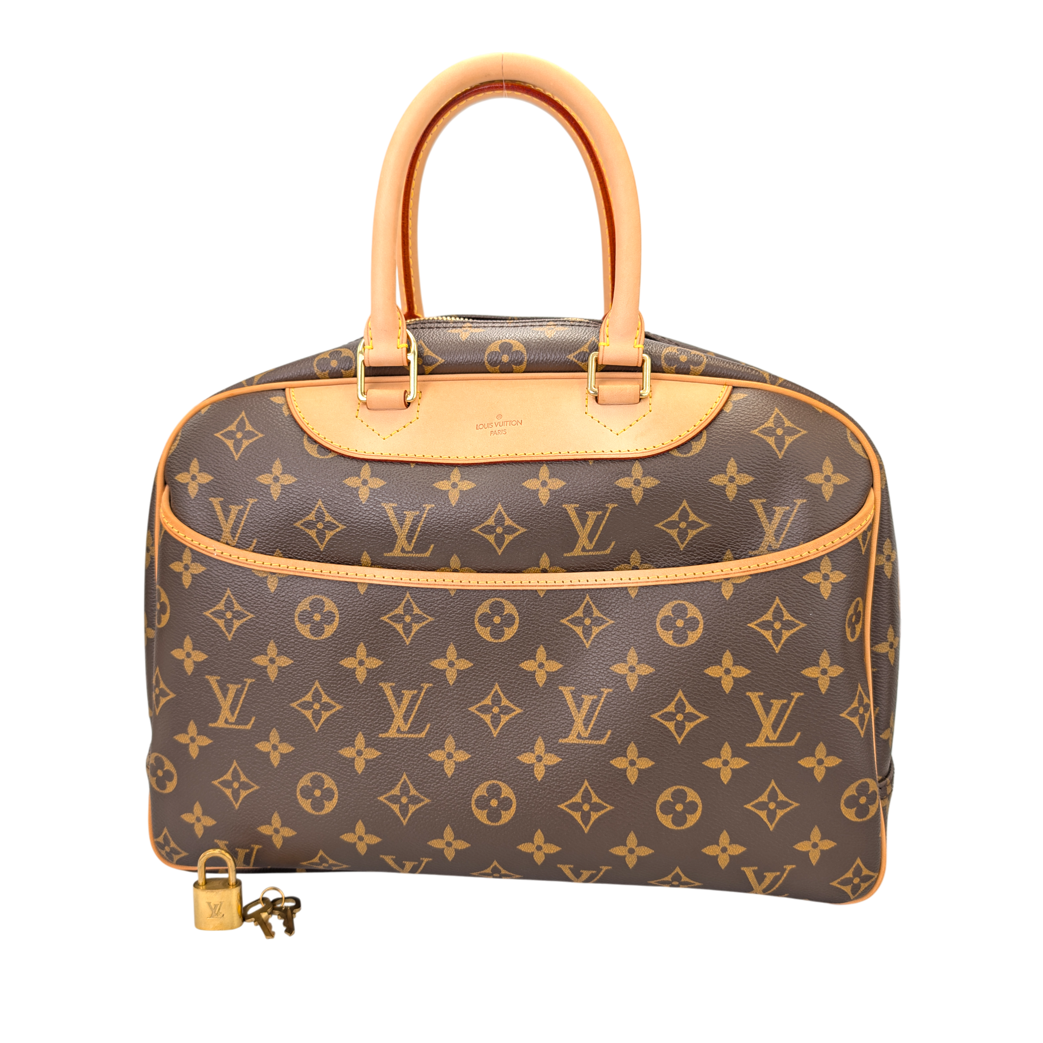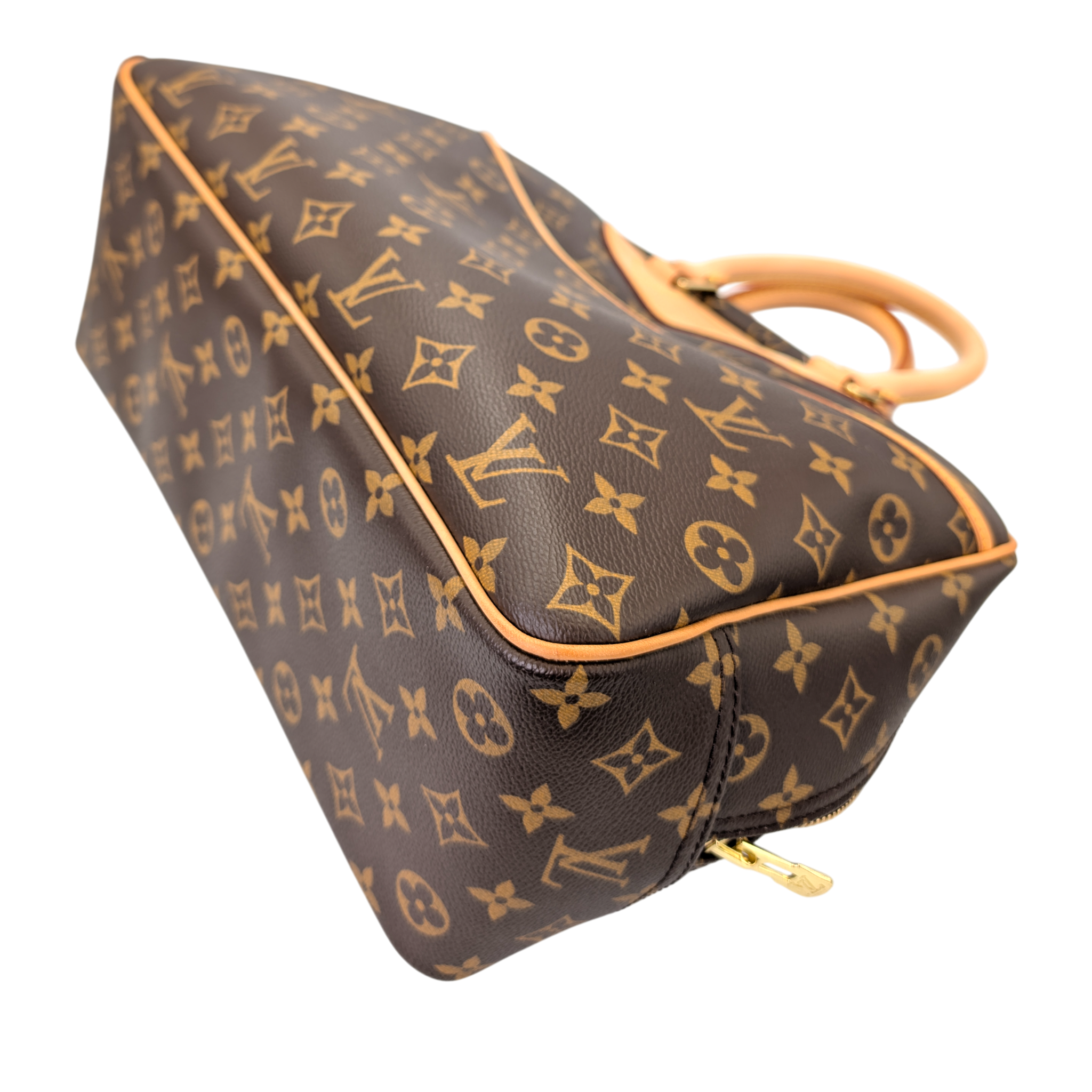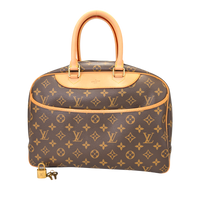 Die Louis Vuitton Deauville im ikonischen Monogram Canvas ist ein klassisches Vintage-Modell der Maison und überzeugt durch ihre strukturierte, elegante Silhouette. Ursprünglich als luxuriöse Beauty- und Vanity-Tasche konzipiert, bietet sie dank ihrer stabilen Form und des umlaufenden Reissverschlusses optimalen Überblick und Funktionalität. Die hell patinierte Vachetta-Lederverarbeitung bildet einen harmonischen Kontrast zum Monogram Canvas und unterstreicht den zeitlosen Charakter dieses Modells.