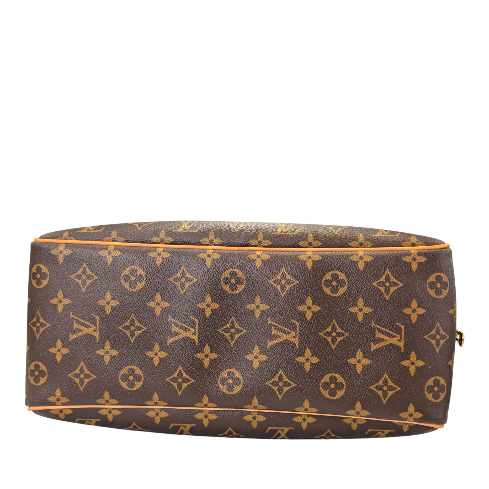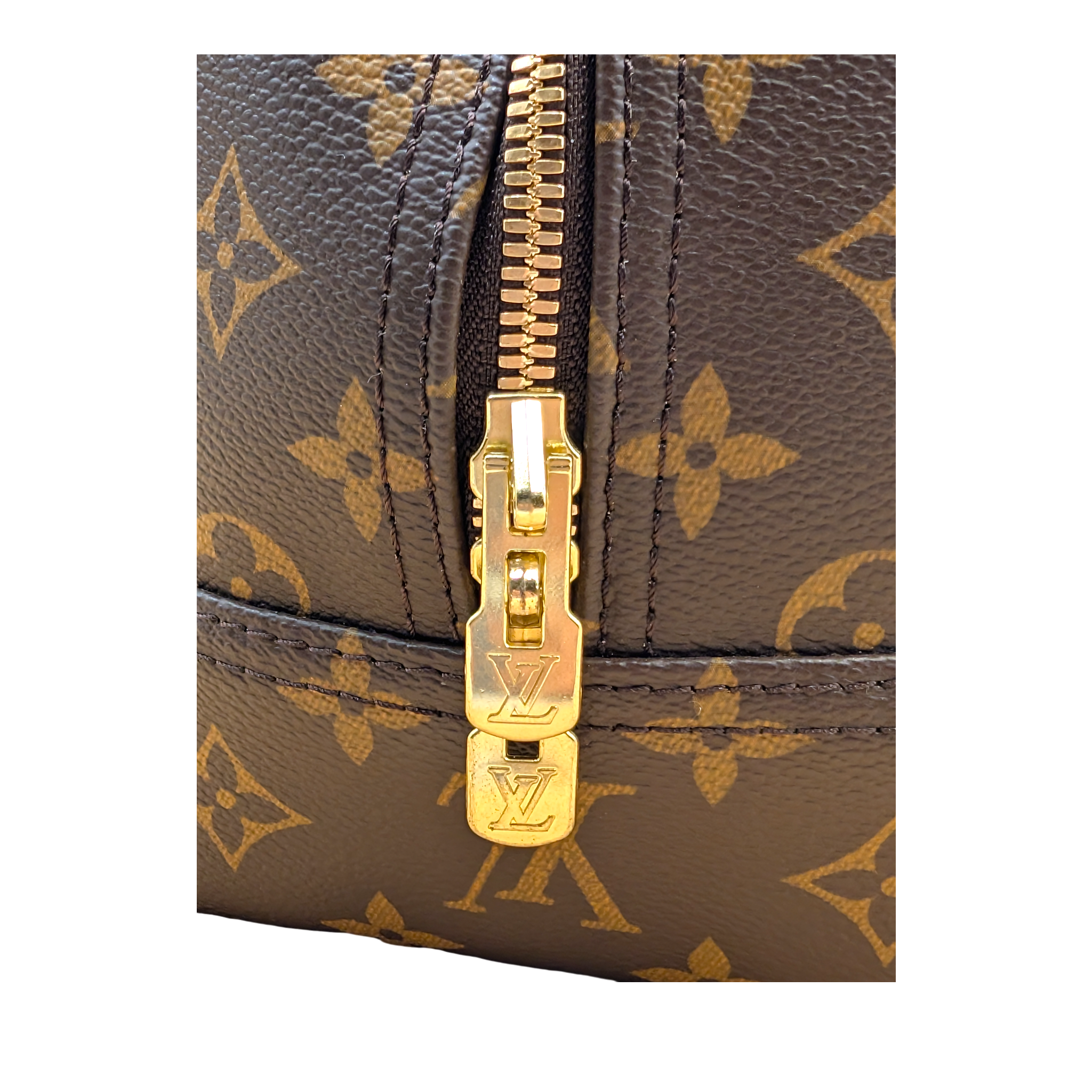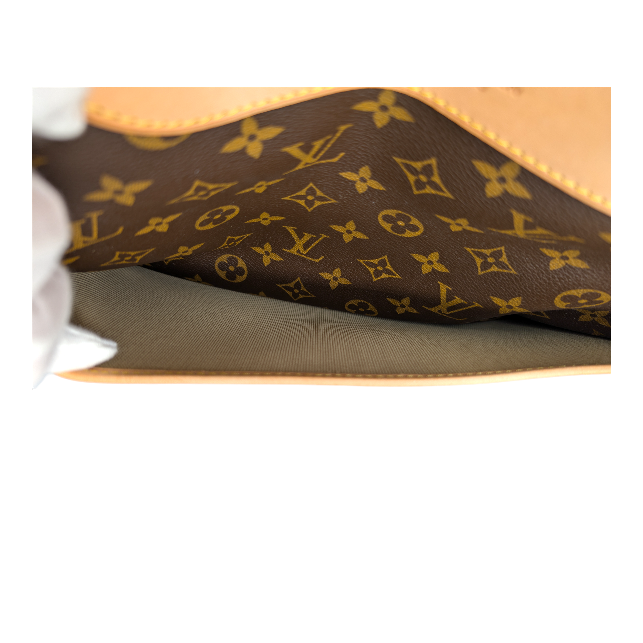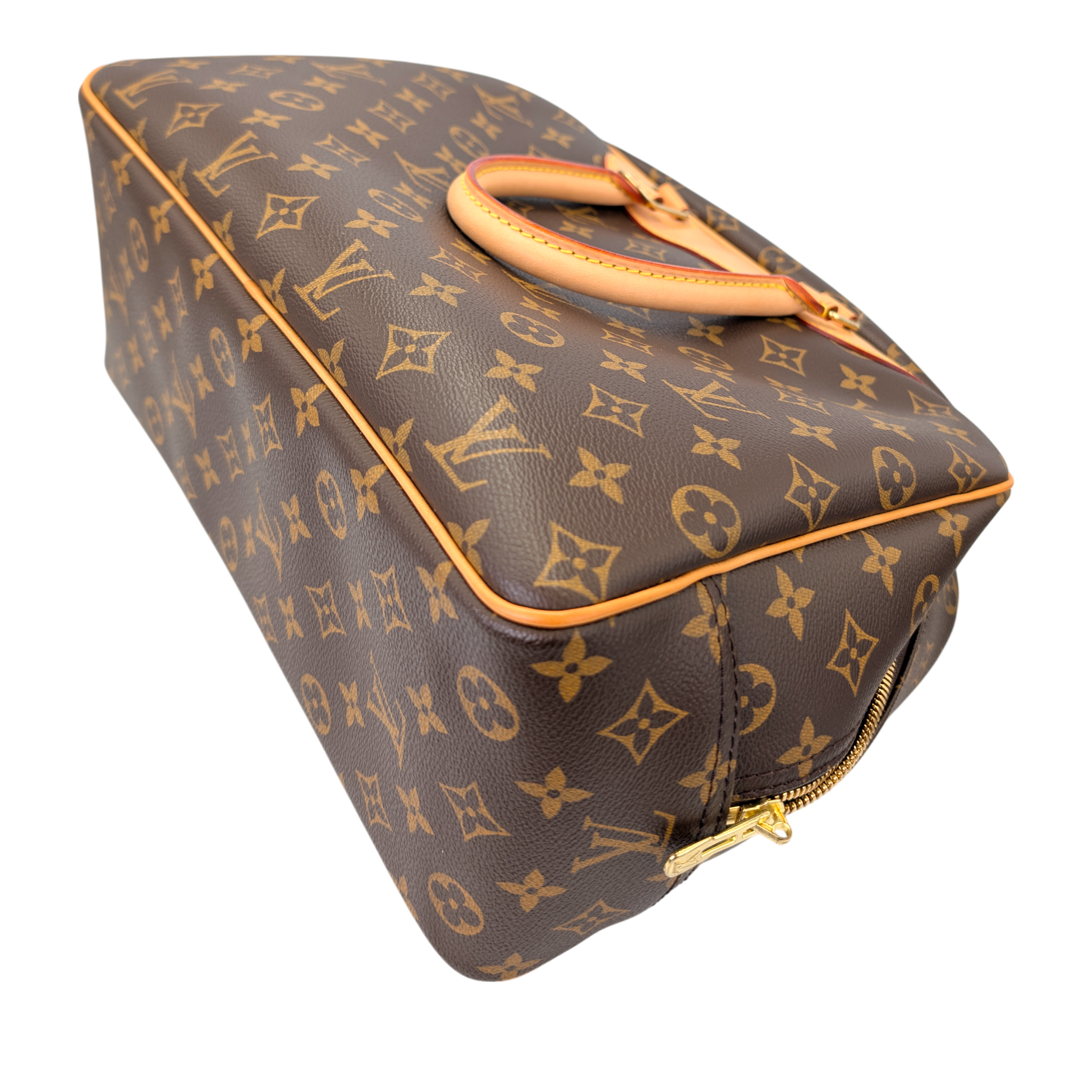 Die Louis Vuitton Deauville im ikonischen Monogram Canvas ist ein klassisches Vintage-Modell der Maison und überzeugt durch ihre strukturierte, elegante Silhouette. Ursprünglich als luxuriöse Beauty- und Vanity-Tasche konzipiert, bietet sie dank ihrer stabilen Form und des umlaufenden Reissverschlusses optimalen Überblick und Funktionalität. Die hell patinierte Vachetta-Lederverarbeitung bildet einen harmonischen Kontrast zum Monogram Canvas und unterstreicht den zeitlosen Charakter dieses Modells.