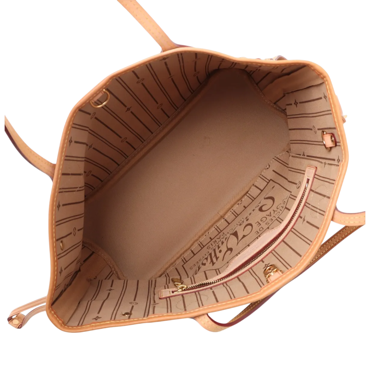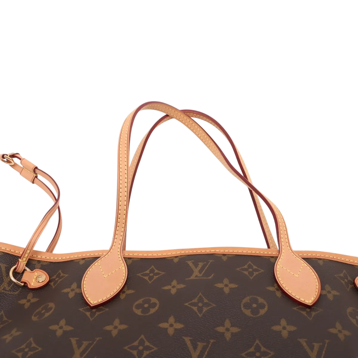 Dank der stabilen Schulterhenkel lässt sich die Neverfull bequem tragen, während die seitlichen Lederschnüre eine flexible Anpassung der Form ermöglichen. Das Design ist bewusst minimalistisch gehalten und überzeugt durch seine Vielseitigkeit sowie den hohen Wiedererkennungswert.